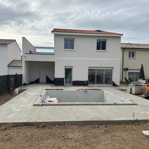 Réalisation d’un enduit monocouche avec bande décorative, pour un rendu soigné, moderne et parfaitement homogène.